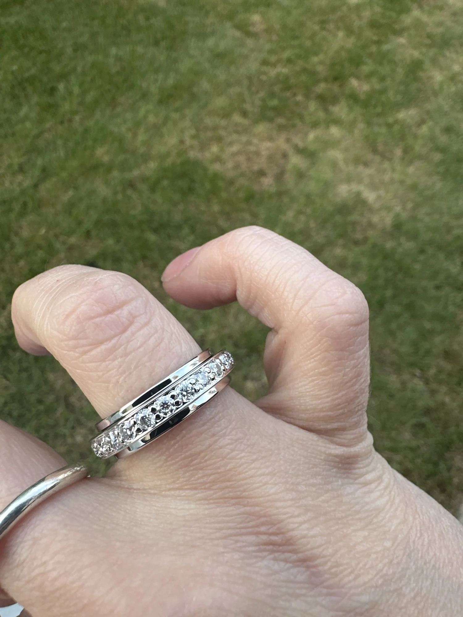 Jewelryhaven720™ An elegant spinner ring with moissanite. An interesting piece of jewelry. A wonderful gift for loved ones!